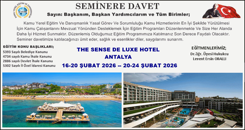 (NOT: Seminer giderleri; İçişleri Bakanlığınca 15.08.2007 tarih ve 26614 sayılı Resmi Gazete’de yayımlanan Mahalli İdareler Harcama Belgeleri Yönetmeliğinin 28. maddesindeki esaslar dahilinde ve Analitik Bütçe Sisteminde Ekonomik Sınıflandırmanın 03.5.9.03 kodundan karşılanacaktır.)